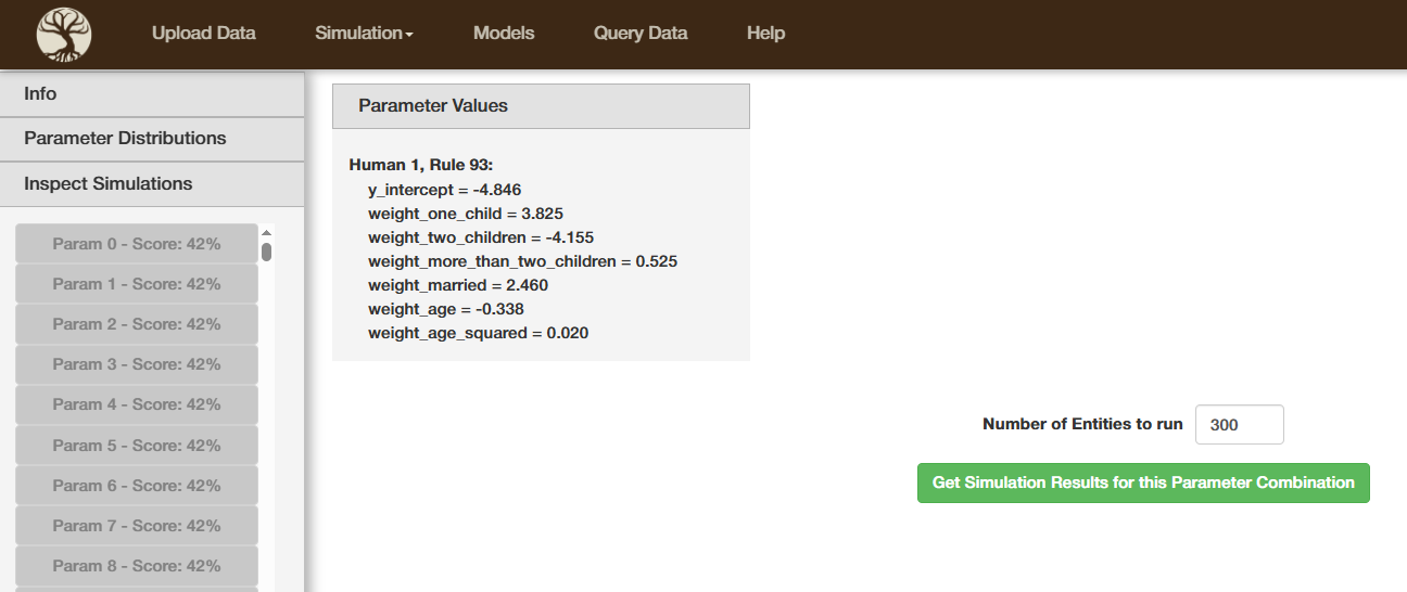 - The parameter values that led to specific simulations working well/not so well