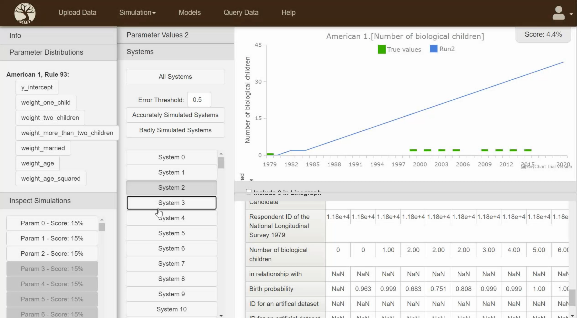 In order to demonstrate Tree of Knowledge's ability to get more accurate and reliable insights by training on multiple datasets, a very basic test was done - the same birth probability was modelled, but was trained on two datasets instead of the one: You can see that this is very different to a meta analysis, as the two datasets are very different: the National Longitudinal Survey of Youth contains data on individual people; the fertility rate data contains data on age-range-groups.
