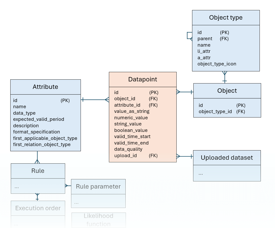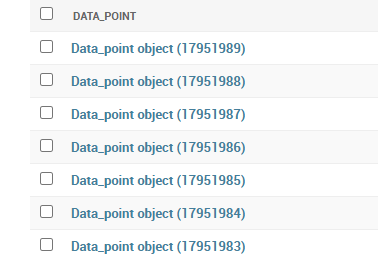 A datapoint usually corresponds to a single cell in a data table. Each datapoint describes the value of an object's attribute at a specific point in time.