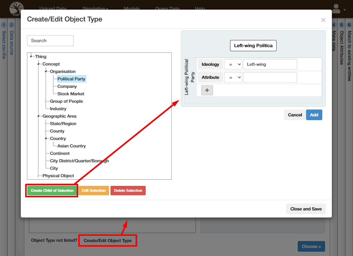 The parent-child relationships of object types are captured by the Object Hierachy Tree - see image below. - Attribute