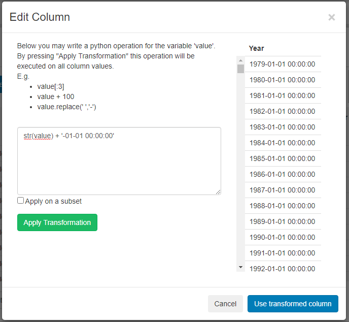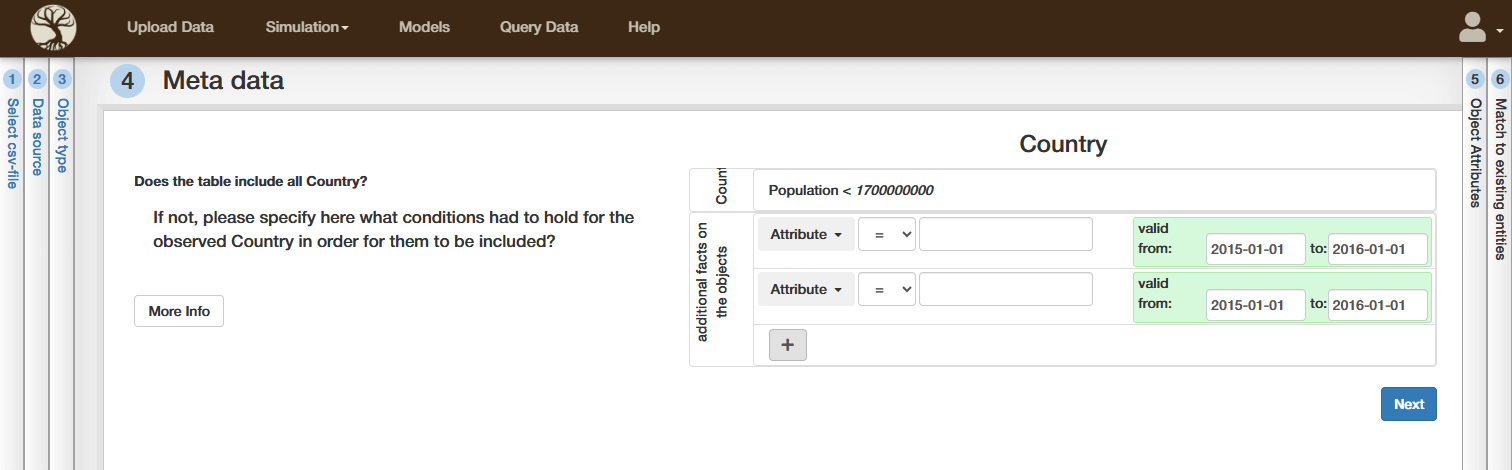 If you uploaded a dataset, then this simulation environment will be set up for you - using the meta data you specified during the uploading - "Prediction of a completely new setting"