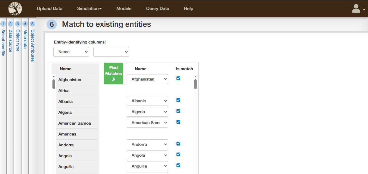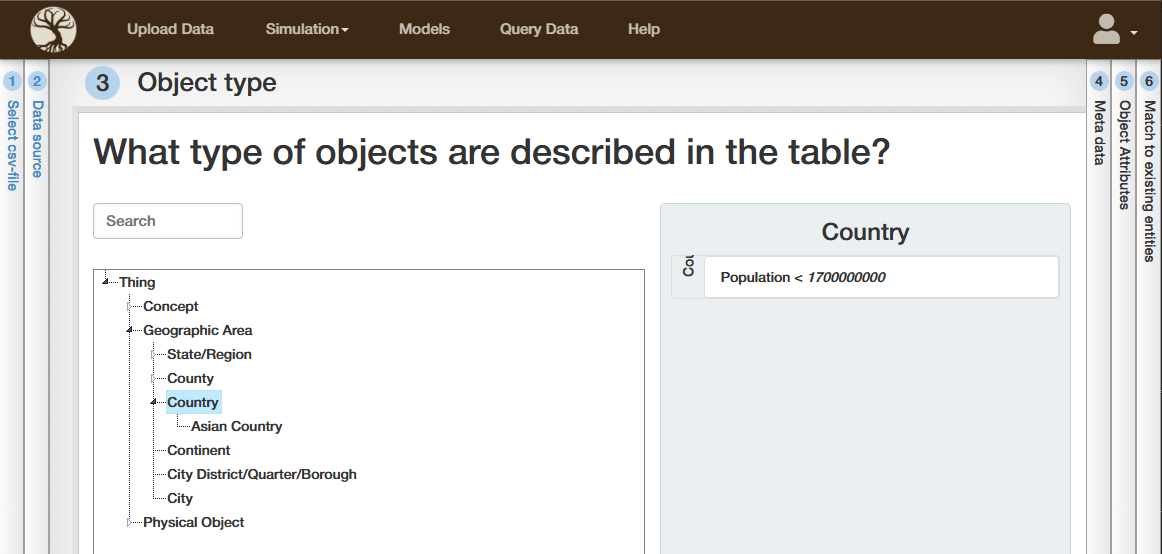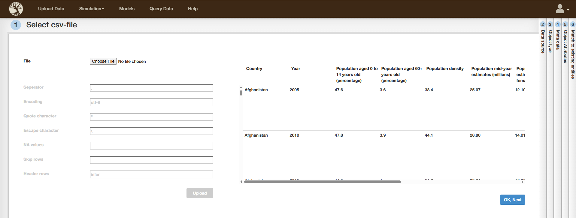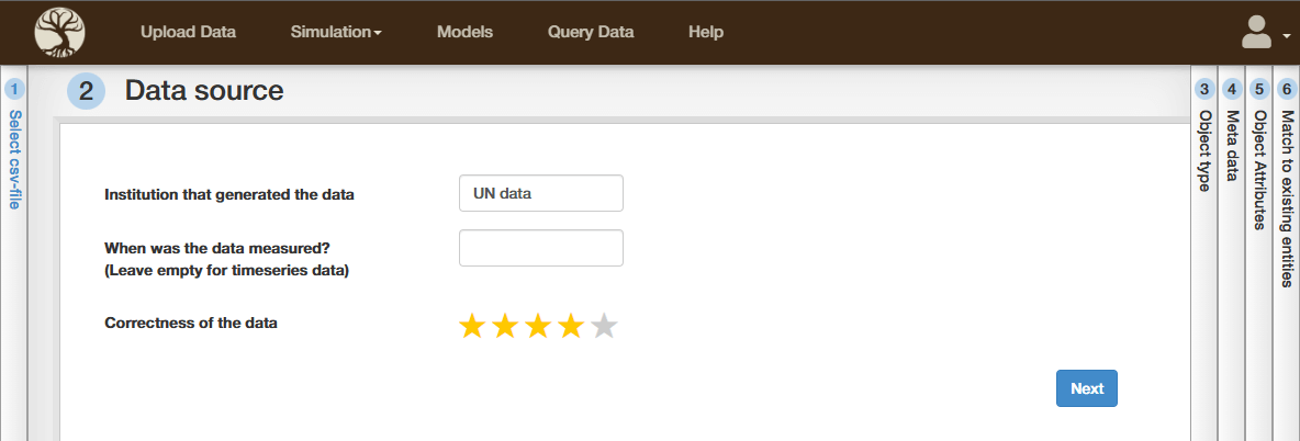 Uploading data to Tree of Knowledge involves 6 steps of clarifying meta-data about the dataset.