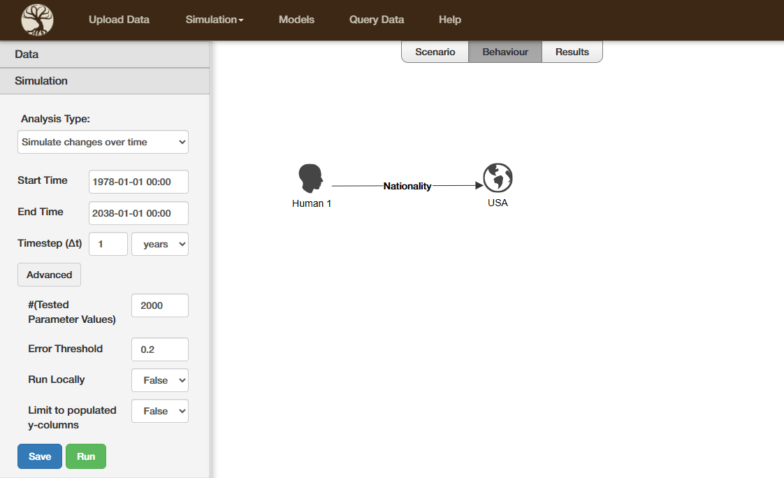 You can specify any social system. If you press run, it will be simulated and you can see what mechanisms drive it and how it unfolds.
